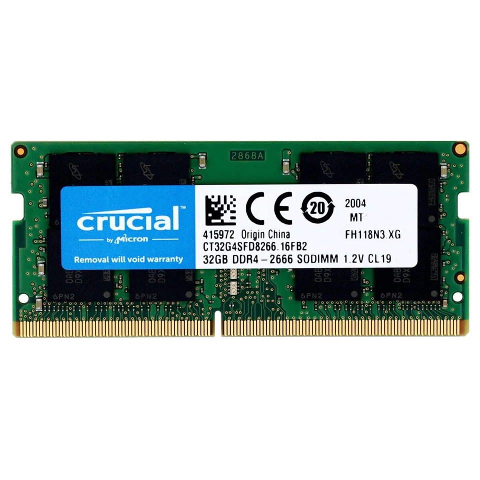 Crucial 32GB Single DDR4 2666 MT/s CL19 SODIMM 260-Pin Laptop RAM Memory – Ultimate High-Capacity Upgrade for Professional Laptops
