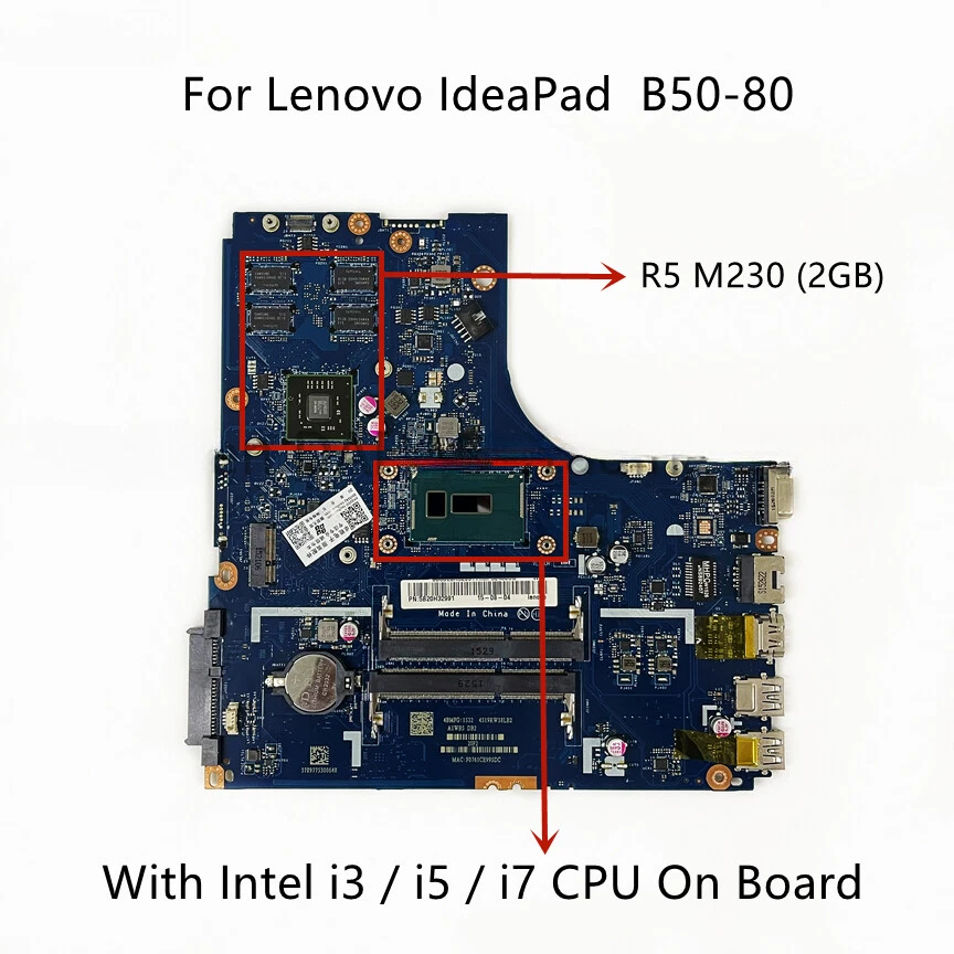 The Lenovo G50-80 motherboard is engineered to support Intel Core i5 4th Generation processors (Haswell series) and provides a reliable foundation for mid-range performance laptops.
